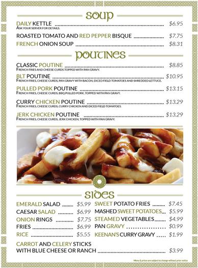 irish coffee pub menu prices